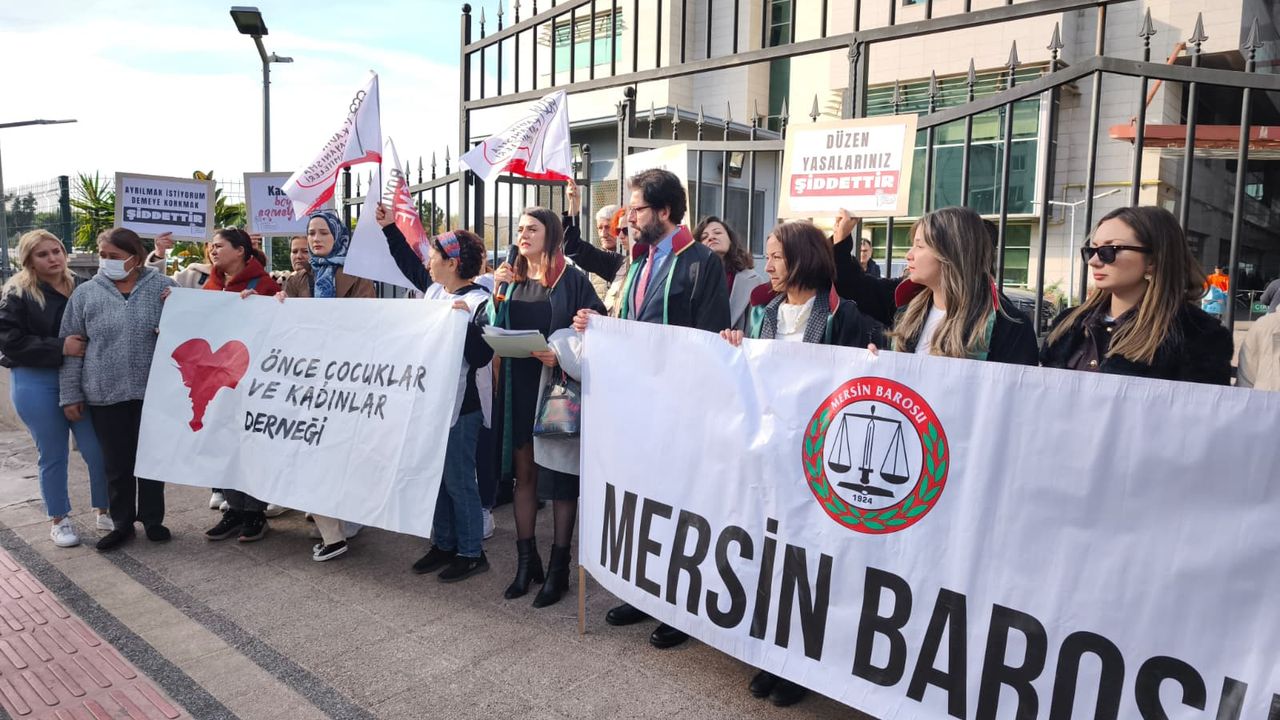 Mersin 3. Ağır Ceza Mahkemesi'ndeki duruşmaya, 20 Kasım 2024'te bir çocuk annesi Aybeniz Top'u tülbentle boğarak öldüren sanık Hasan F. katıldı. Aile ve Sosyal Hizmet Bakanlığı ile Mersin Barosu Kadın Hakları Merkezi avukatları ve Top'un yakınları da duruşma salonunda hazır bulundu.