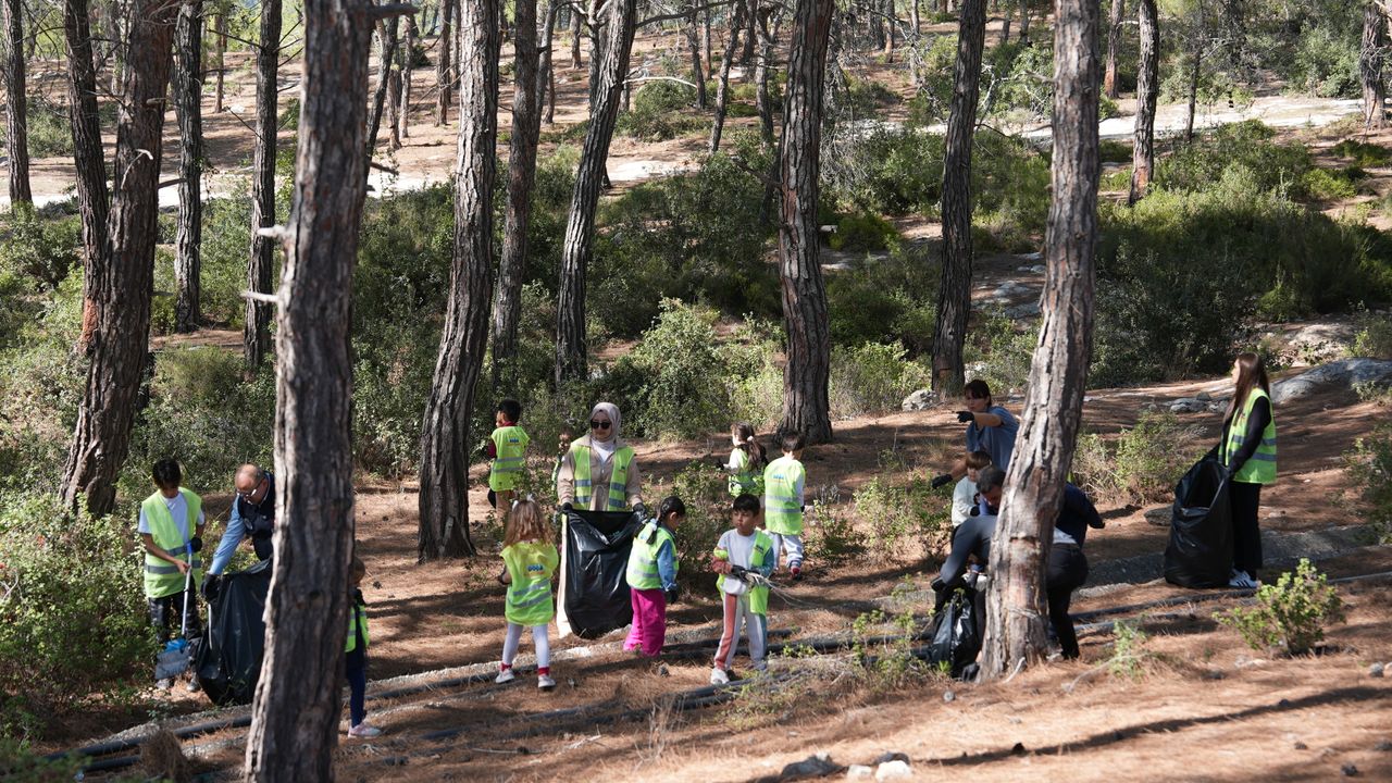 Bu kapsamda, Belediye Başkanı Mustafa Kara ve sosyal medya hesabından 'takipçim kadar çöp topluyorum' kampanyasını başlatan 11 yaşındaki Aras Kayretli ile Şehit Musa Özalkan Kreş ve Gündüz Bakımevi öğrencileri ormanlık alanda temizlik çalışması yaptı.