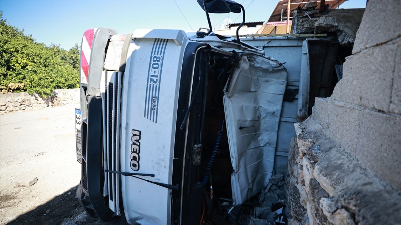 Hasan K.'nın kullandığı 33 AJM 213 plakalı nakliye kamyonu, Tömük Mahallesi 805 Sokak'taki virajda sürücüsünün kontrolünden çıktı.