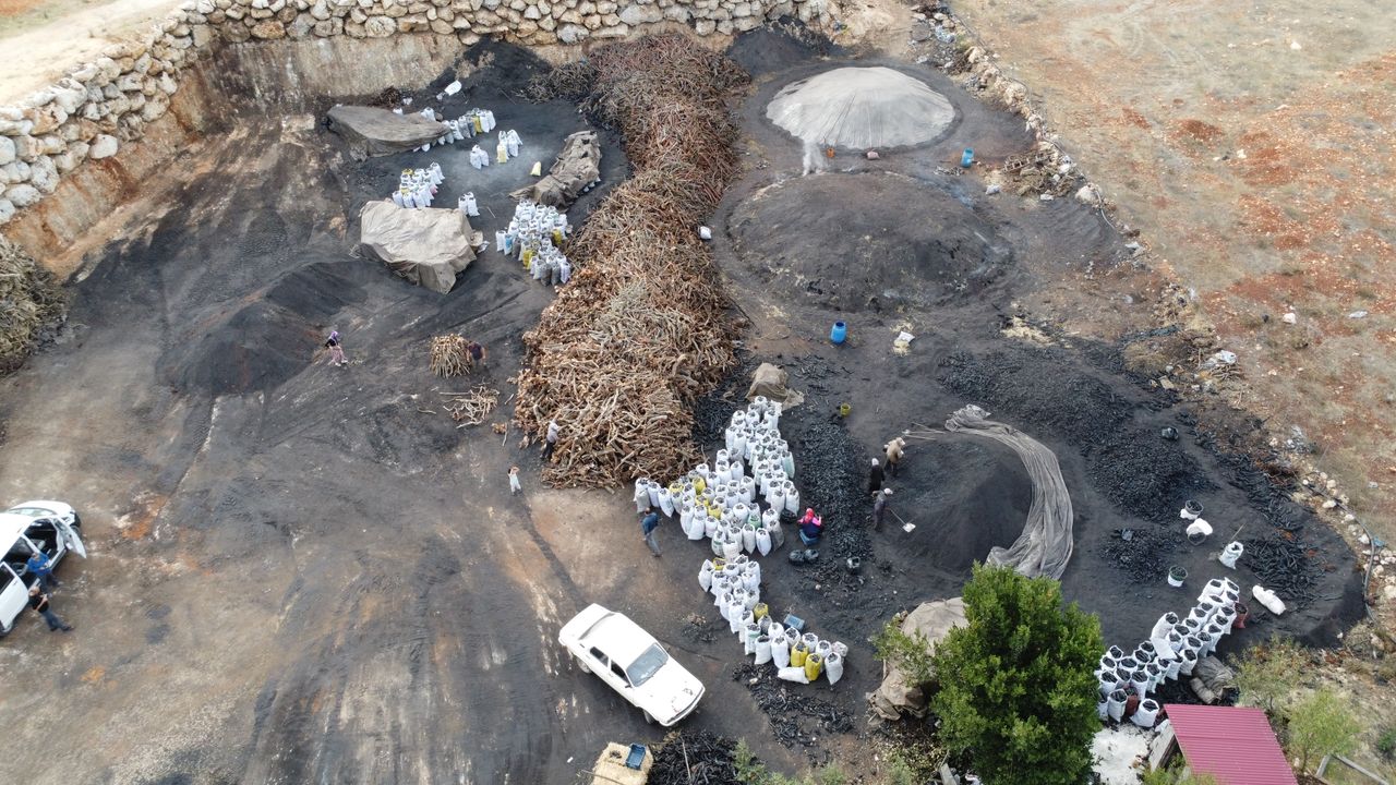 MERSİN (AA) - Mersin'in Silifke ilçesinde Orman İşletme Müdürlüğü denetimindeki tapulu arazilerden toplanan meşe odunları, işçiler tarafından mangal kömürüne dönüştürülüyor.