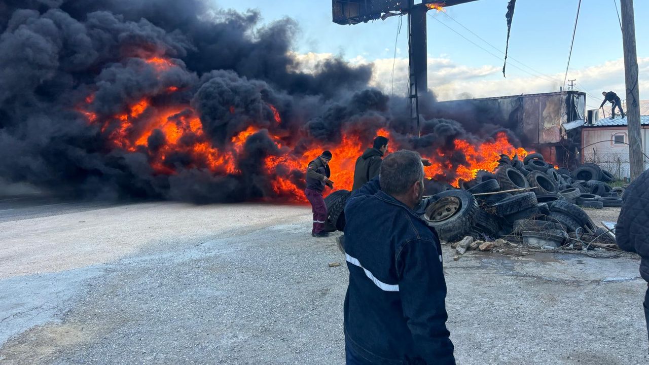 Alev alan lastiklerden yükselen duman nedeniyle D-400 kara yolunda trafik aksadı.