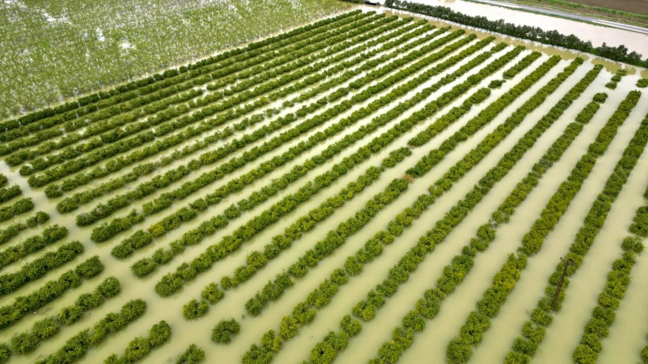Mersin'in Tarsus ilçesinde dün etkili olan sağanak nedeniyle su altında kalan tarım arazileri dronla görüntülendi.