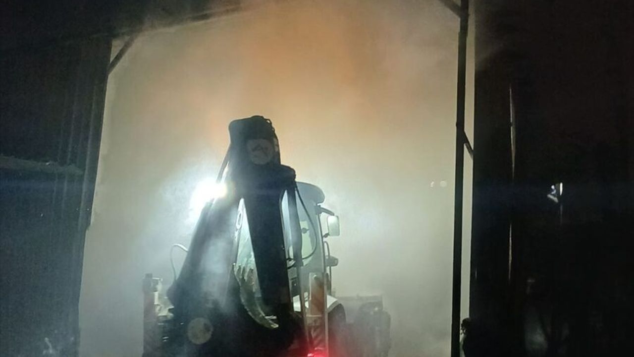 Ekiplerin müdahalesiyle söndürülen yangında samanlıkta hasar oluştu.