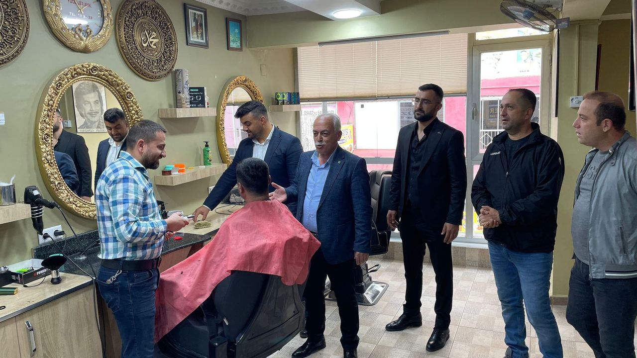 Ziyaret kapsamında esnaflarla bir araya gelen Başkan Aycan ve teşkilat mensupları, berberlerin talep ve sorunlarını dinledi. Samimi sohbet ortamında gerçekleşen buluşmada, yerel esnafın durumu ve beklentileri üzerine istişarelerde bulunuldu.