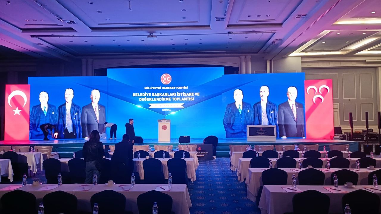 Manavgat ilçesi Side turizm merkezindeki bir otelde Genel Başkan Devlet Bahçeli himayesinde belediye başkanlarının katılımıyla 'üretken belediyecilik' vizyonunun ele alındığı programa, MHP Genel Başkan Yardımcısı Sadir Durmaz başkanlık ediyor.