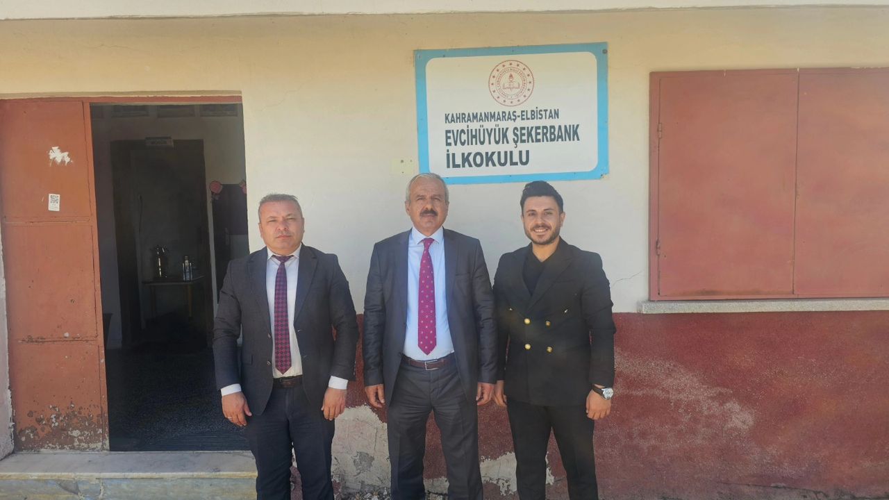 Elbistan İlçe Milli Eğitim Müdürü İlyas Gezer ve Şube Müdürü Erdem Hurman, okul ziyaretleri kapsamında Evcihüyük Şekerbank İlkokulu’nu ziyaret etti.