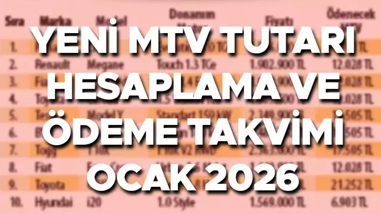 MTV hesaplama tablosu 2026... Motorlu taşıtlar vergisi ilk taksit ödemelerinde sona geliniyor. MTV borcu sorgulama ve son ödeme tarihi de araç sahipleri tarafından yoğun olarak araştırılıyor. MTV, taşıtların kayıt ve tescilinin yapıldığı yerin vergi dairesince her yıl ocakta yıllık olarak tahakkuk ettiriliyor. MTV, ocak ve temmuzda olmak üzere eşit 2 taksitte ödeniyor. Diğer 2026 yeniden değerleme oranı doğrultusunda otomobil ve motosiklet kullanıcılarının ödeyeceği MTV tutarları da kalem kalem hesaplandı. Peki MTV borcu sorgulama ve ödemesi nereden yapılır? İşte ayrıntılar...