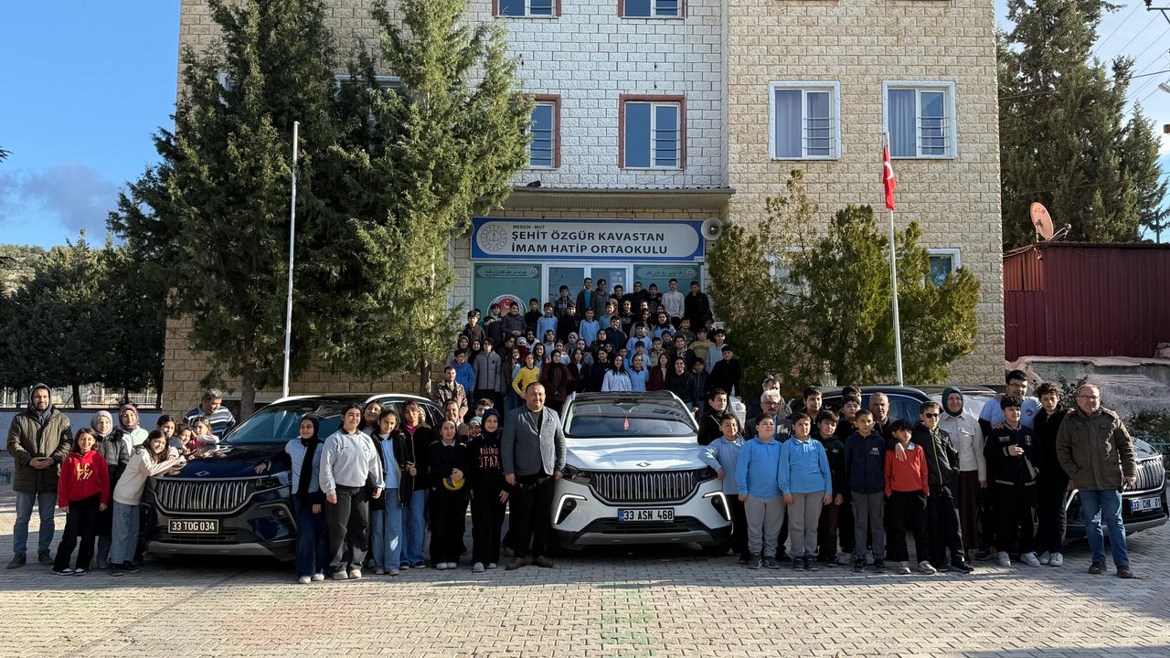 Mersin'in Mut ilçesinde Tutum, Yatırım ve Türk Malları Haftası kapsamında öğrencilere Togg'un T10X modeli tanıtıldı.