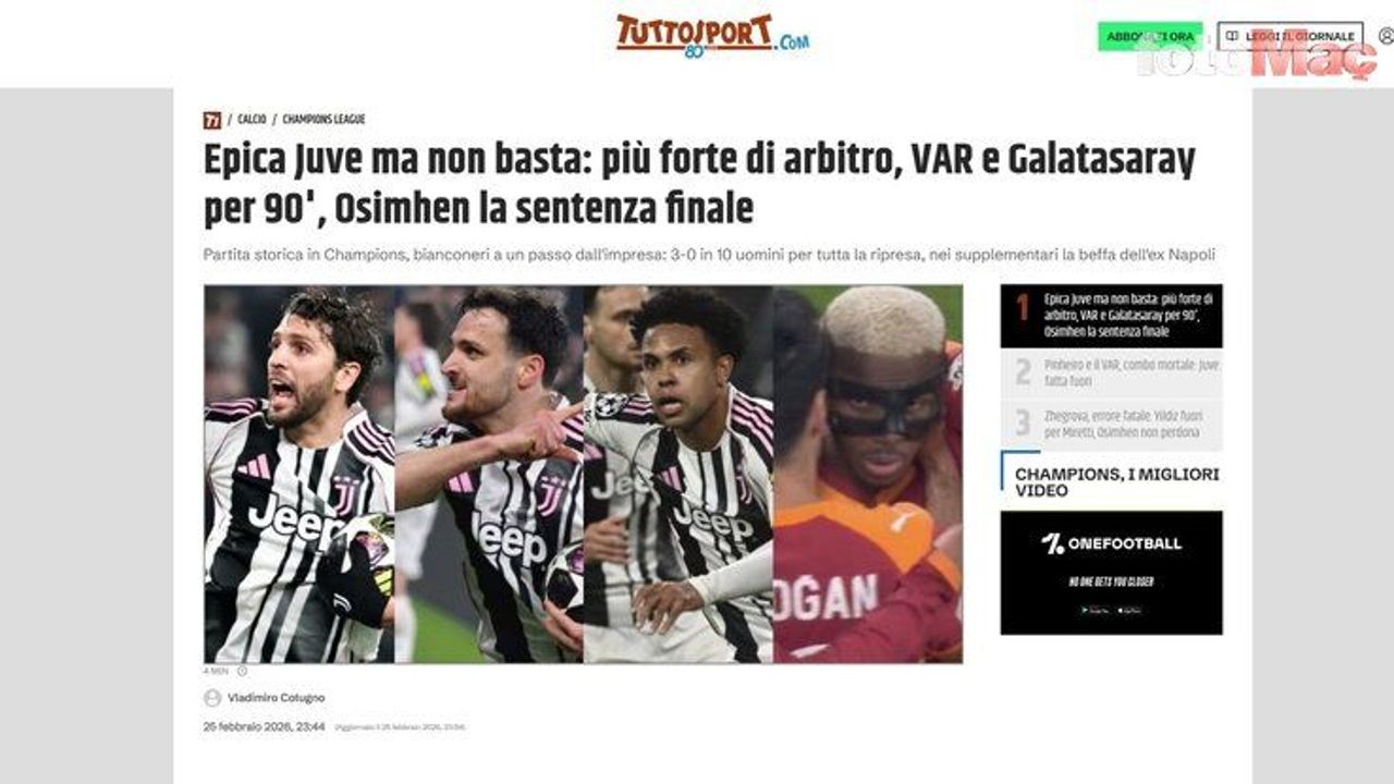 Tuttosport | Destansı Juventus yetmedi: 90 dakika boyunca hakemden, VAR'dan ve Galatasaray'dan daha iyiydiler ama son sözü Osimhen söyledi.