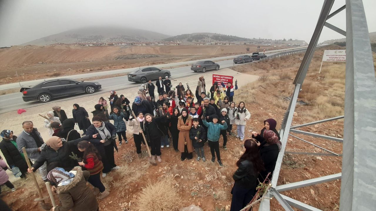 Afşin’deki Ertuğrul Gazi İlkokulu 4/A sınıfı öğrencileri, 24 Kasım Öğretmenler Günü kapsamında öğretmenleri Kemal Kürne için hatıra ormanı oluşturdu.