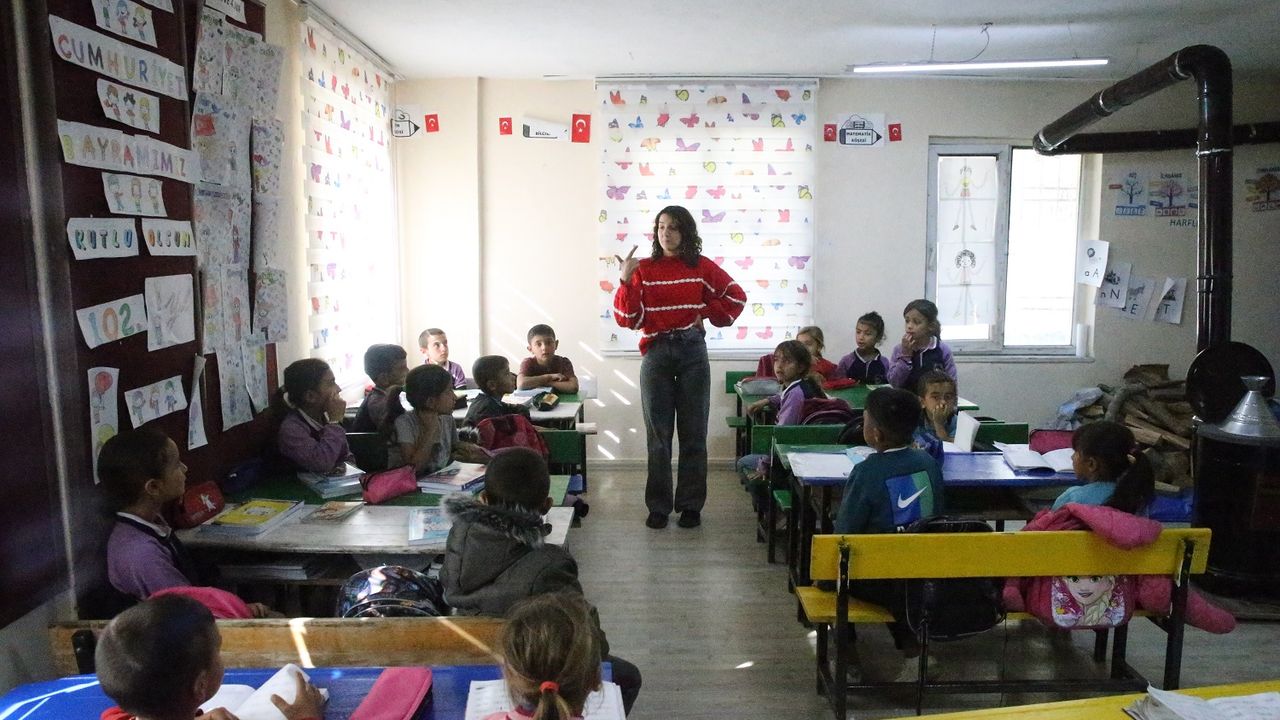 Kahramanmaraş'ın Onikişubat ilçesine bağlı kırsal Çağırgan Kikiler İlkokulu'nda görev yapan 25 yaşındaki sınıf öğretmeni Derya Acun, okuldaki tüm sorumlulukları tek başına üstlenerek öğrencilerine sıcak bir eğitim ortamı sunuyor.