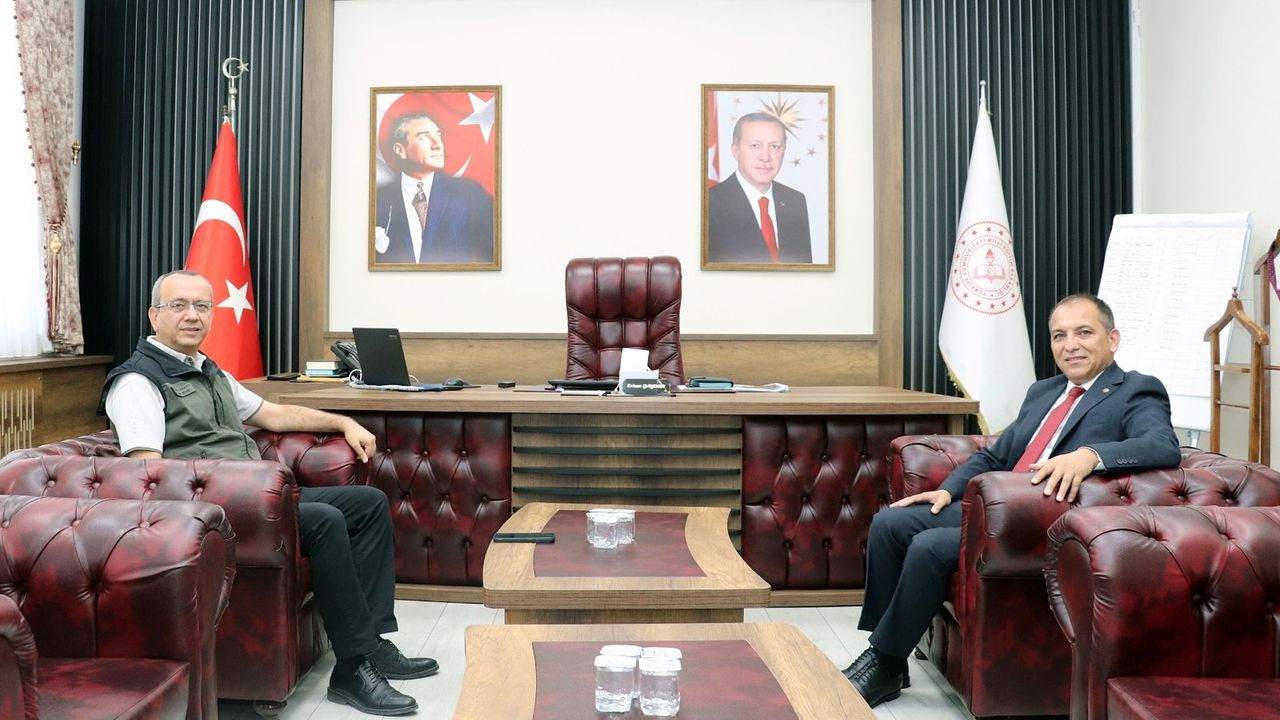 Kahramanmaraş Orman Bölge Müdürü Yusuf Karartı, İl Millî Eğitim Müdürü Erhan Baydur’u makamında ziyaret etti.