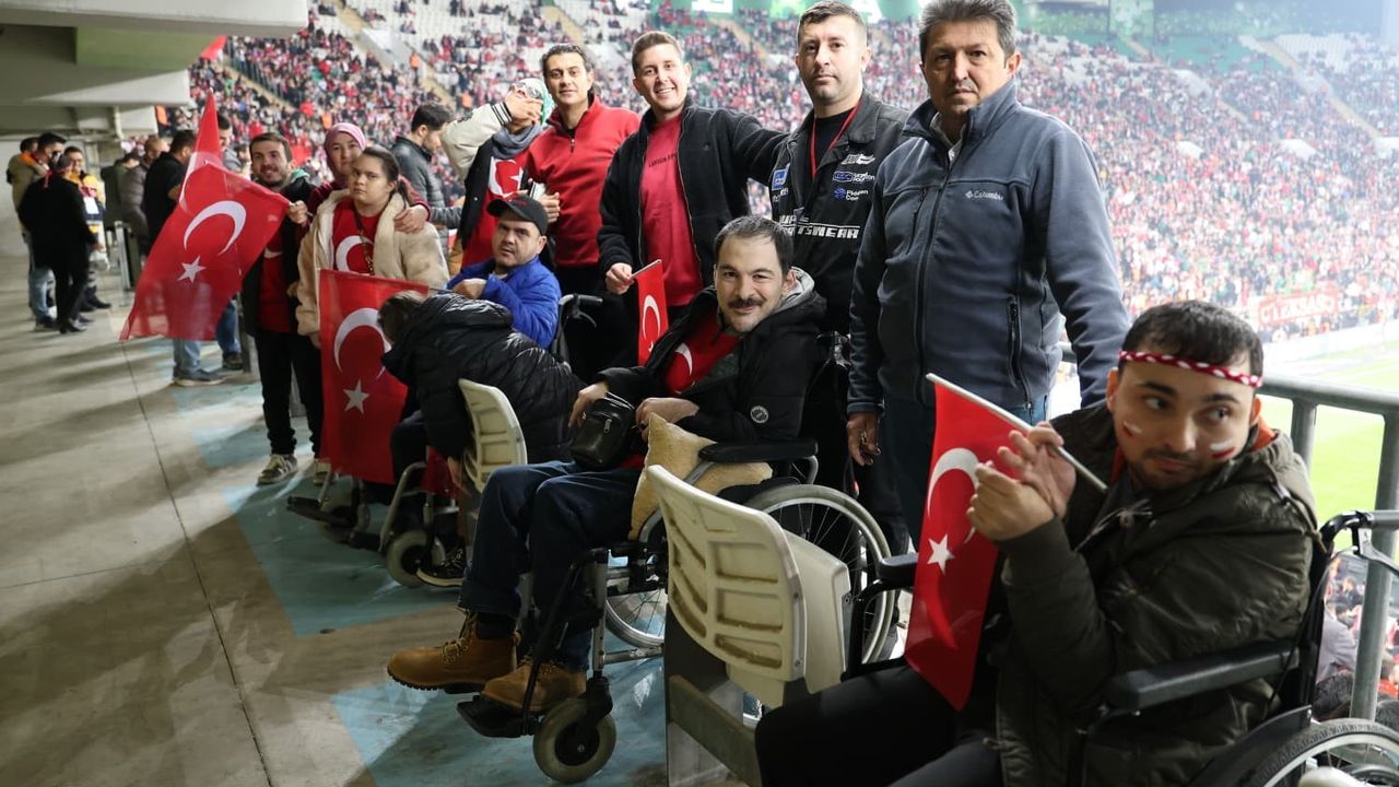 Maç boyunca büyük heyecan ve coşku yaşayan engelli bireyler milli maçı stadyumdan izlemelerini sağlayan Osmangazi Belediye Başkanı Erkan Aydın’a teşekkür etti.