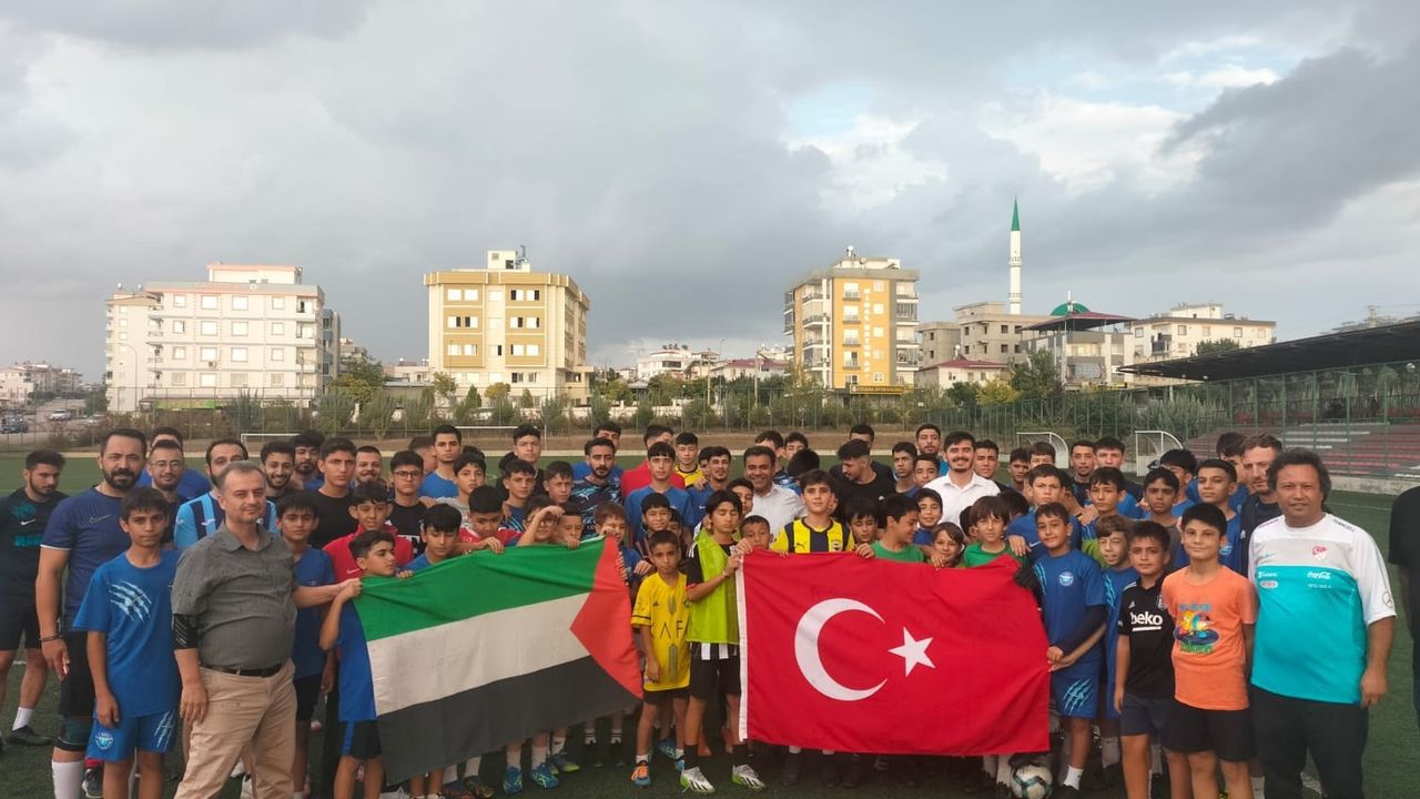 Osmaniye'nin Kadirli ilçesinde 1. Amatör Küme takımlarından 7 Mart Kadirli Demirspor oyuncuları antrenmana Türk ve Filistin bayraklarıyla çıktı.