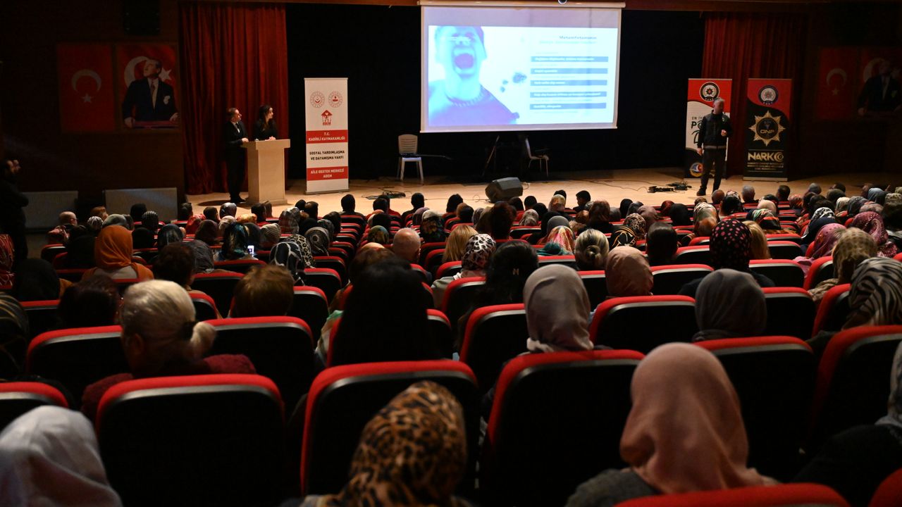 Kadir Kaymakamlığı öncülüğünde İlçe Emniyet Müdürlüğü, Aile Destek Merkezi (ADEM), İlçe Sağlık Müdürlüğü ve Yeşilay işbirliğinde Devlet Bahçeli Kültür Merkezi'nde düzenlenen konferansa çok sayıda vatandaş katıldı.