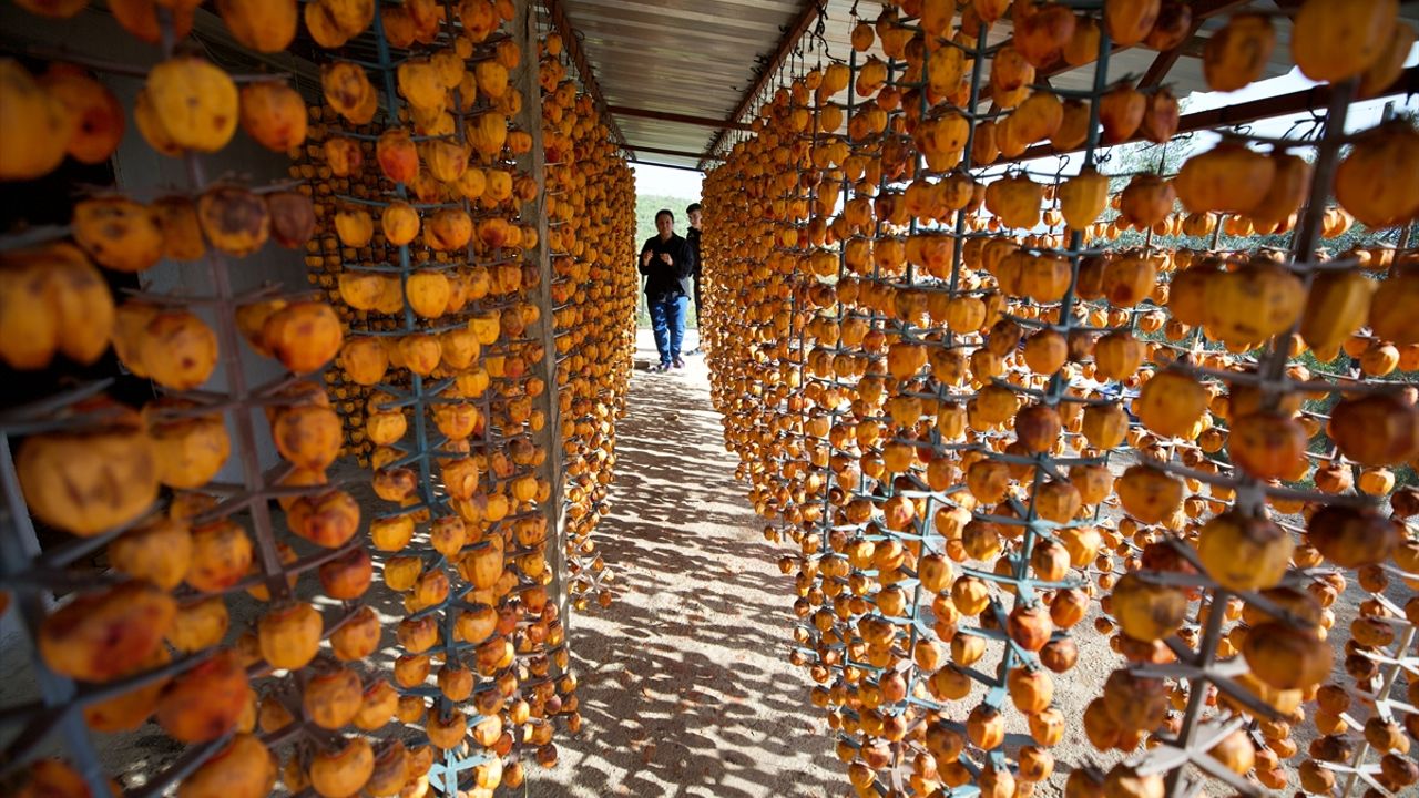 Osmaniye'nin Sumbas ilçesinde, Nurgül ve Gökhan Güller çifti, 10 dekarlık alanda yetiştirdikleri Trabzon hurmasını kurutarak Türkiye'nin çok sayıda iline gönderiyor.