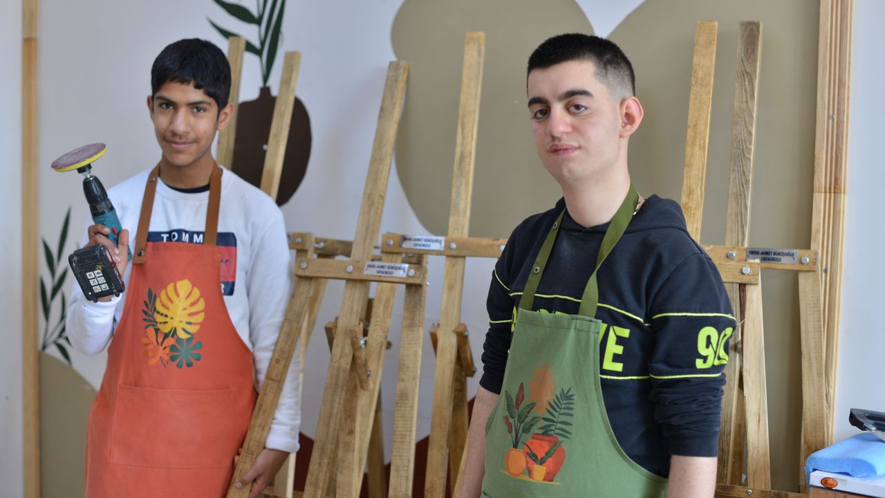 Atölye çalışmalarıyla öğrencilerin hem hayal güçlerini geliştirmesi hem de üretim süreçlerine aktif katılım sağlaması hedefleniyor. Bu kapsamda, öğrenciler resim sergilerinde kullanılmak üzere ahşap sehpa ve stantlar üretiyor.