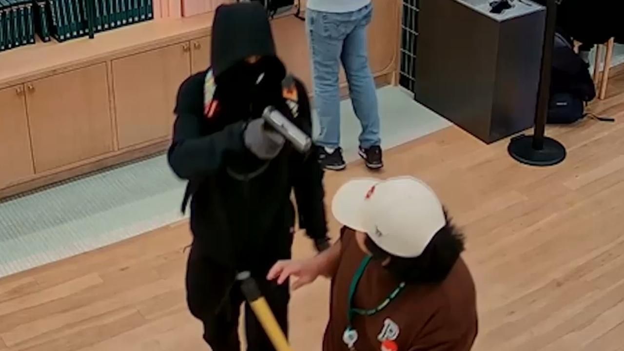 Güvenlik görüntülerinde, tamamen siyah giyinen hırsızlardan birinin yanında getirdiği çekiçle vitrinleri parçaladığı görülüyor. Olay sırasında bazı müşterilerin ellerini havaya kaldırarak korku içinde beklediği kameraya yansıdı.