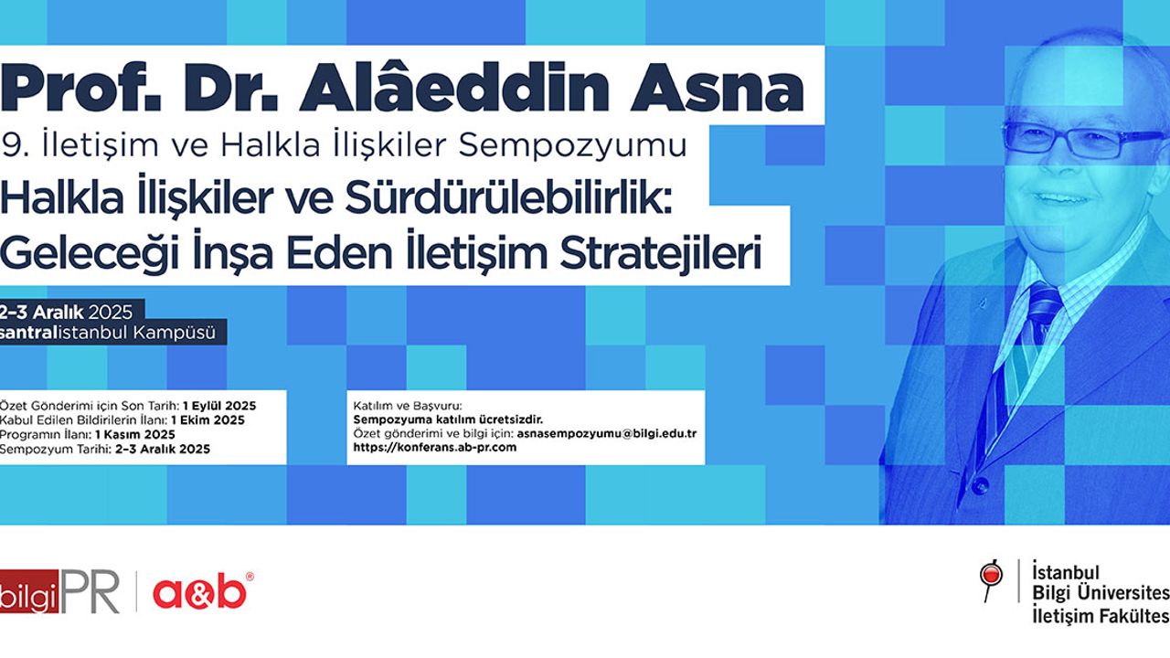 İstanbul Bilgi Üniversitesi İletişim Fakültesi ve A&B İletişim işbirliği ile Prof. Dr. Alâeddin Asna adına bu yıl dokuzuncusu düzenlenen İletişim ve Halkla İlişkiler Sempozyumu “Halkla İlişkiler ve Sürdürülebilirlik: Geleceği İnşa Eden İletişim Stratejileri” başlığıyla 2–3 Aralık 2025 tarihlerinde santralistanbul Kampüsü’nde gerçekleşecek.