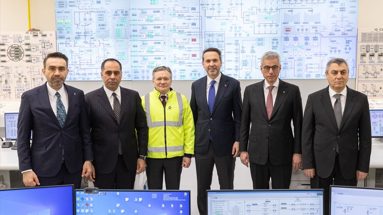 Santralin ilk ünitesinin ana tesislerindeki çalışmaları yerinde gören heyetler, işletme personelinin halihazırda planlı vardiya düzeninde çalıştığı 1. Güç Ünitesi'nin ana kontrol odasında incelemelerde bulundu.