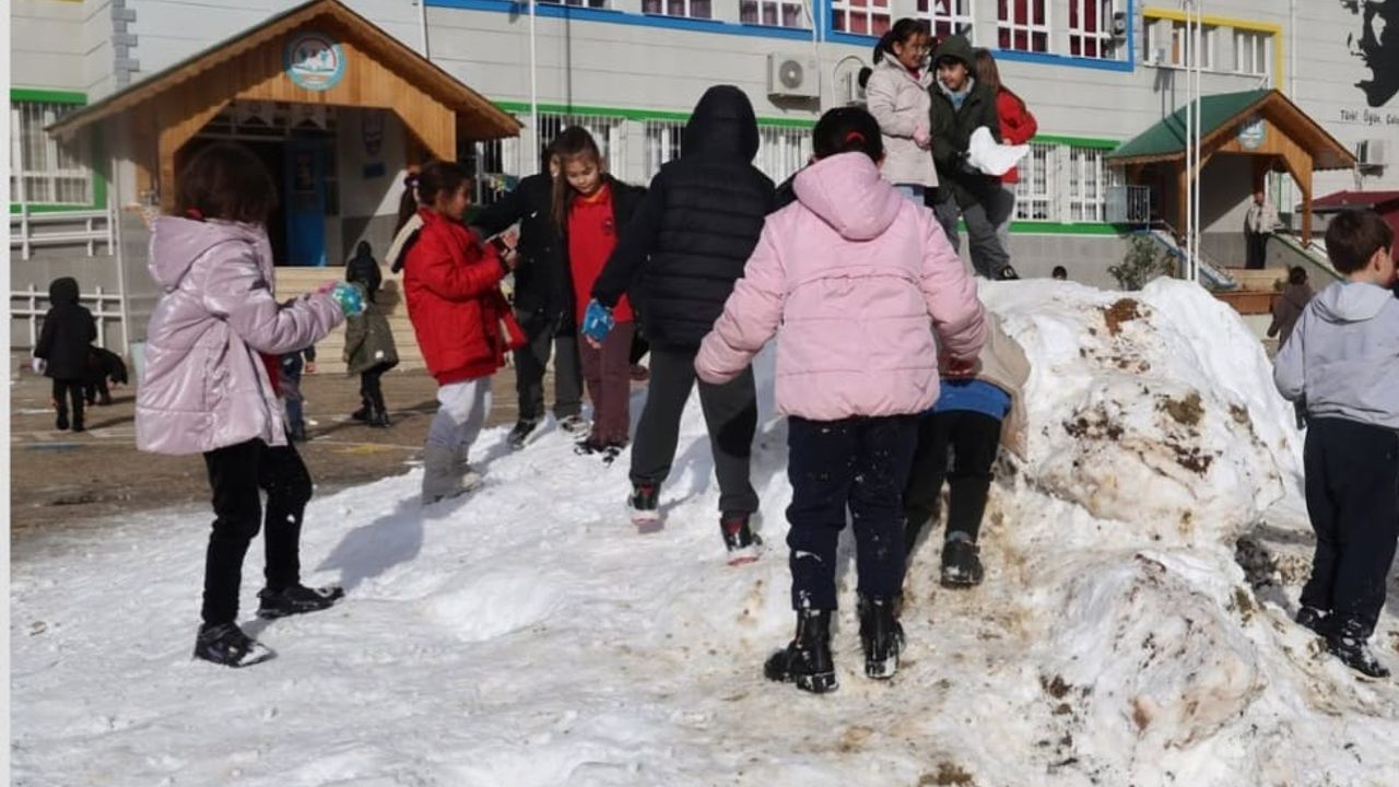 Saimbeyli Belediyesi ekiplerince öğrencilerin oynaması için Kozan ilçesindeki okula kar taşındı.