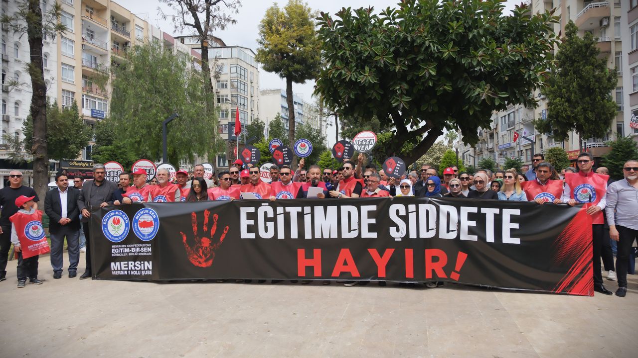 Grup adına konuşan Eğitim-Bir-Sen Mersin 1 No'lu Şube Başkanı Ertuğrul Yıldız, 'Eğitimcilere yönelik saldırılar geleceğimizi karartmakta, eğitim camiasını tedirgin etmekte, can güvenliğini çalışma hayatında başat sorun haline getirmektedir.' dedi.