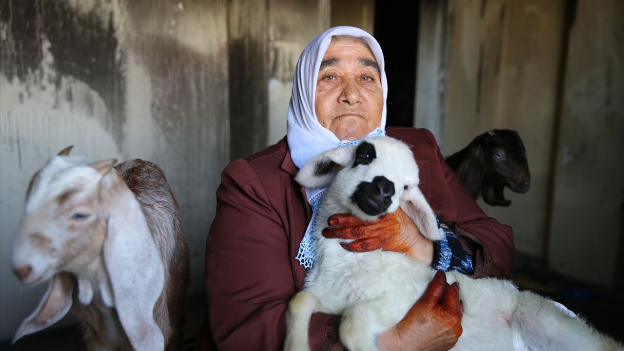 Adana'nın merkez Yüreğir ilçesinde evinde yangın çıkan 75 yaşındaki şehit annesi Fatma Hakan, biberonla beslediği 2 oğlak ve kuzusunun itfaiye ekipleri tarafından kurtarılmasıyla buruk sevinç yaşadı.