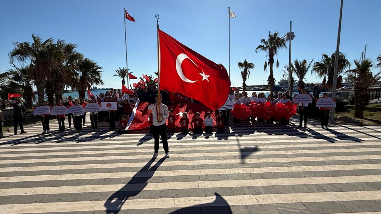 Mersin'in Silifke ilçesinde öğrenciler tarafından bayrak yürüyüşü gerçekleştirildi.