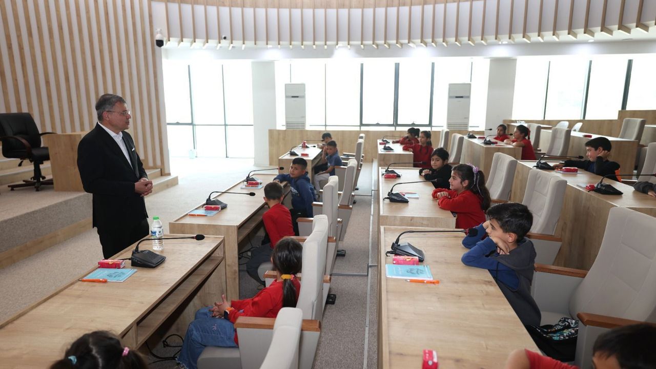 Belediye Başkanı Mustafa Turgut, Gazipaşa, Yeşilovacık, Şehit Barbaros Yılmaz ve Ahmet Necati Hancıoğlu ilkokullarından gelen öğretmen ve öğrencileri meclis salonunda ağırladı.
