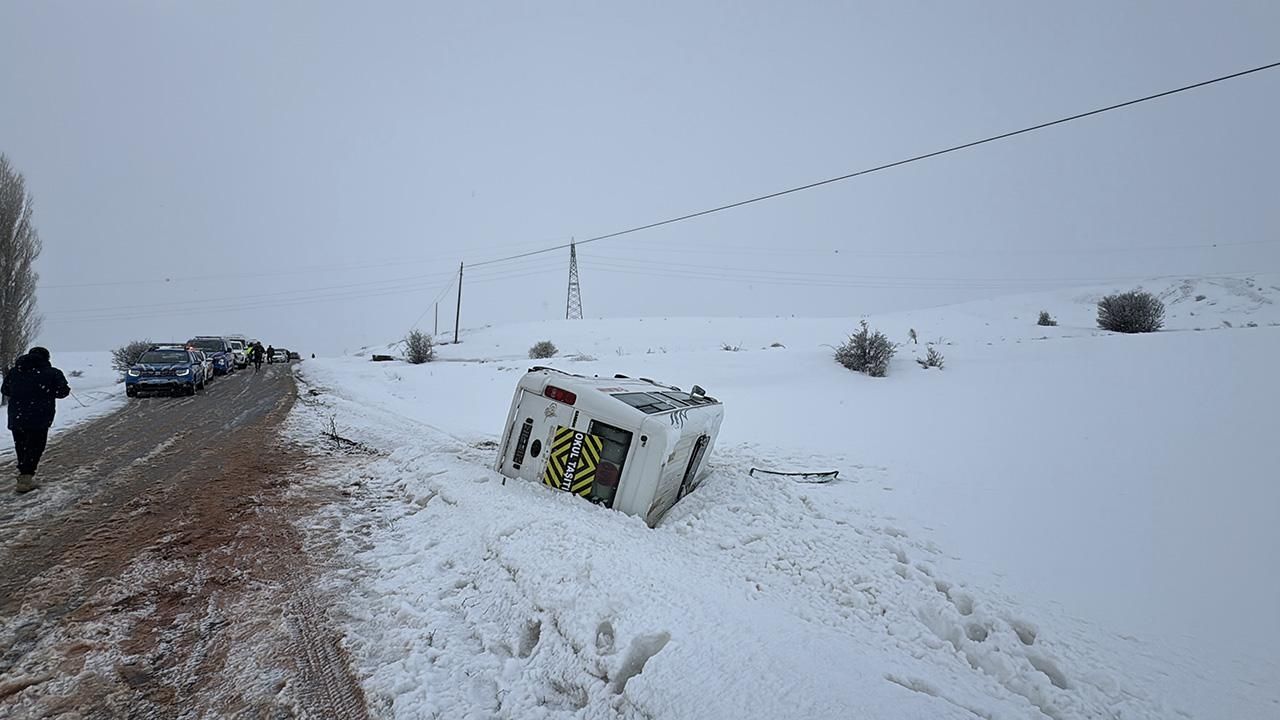 Sivas'ın Yıldızeli ilçesinde etkili olan kar ve buzlanma nedeniyle öğrenci servisi devrildi. Yaşanan kazada ilk belirlemelere göre 10 kişi yaralandı.