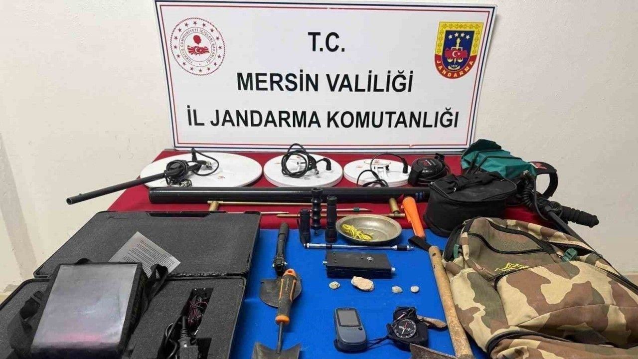 Mersin’de kaçak kazı yapan 3 şüpheli, jandarma ekiplerince suçüstü yakalandı.