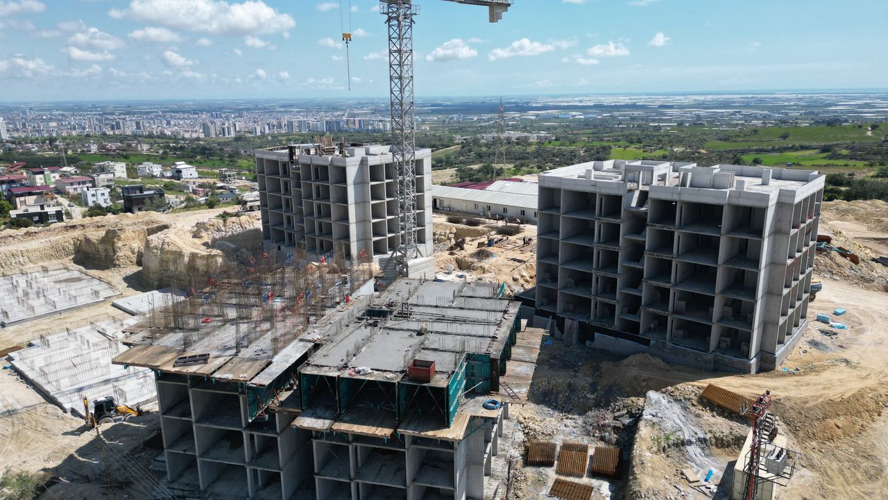 MERSİN (AA) - Mersin'in Tarsus ilçesinde, Toplu Konut İdaresi Başkanlığı (TOKİ) tarafından yaptırılan konut inşaatları devam ediyor.