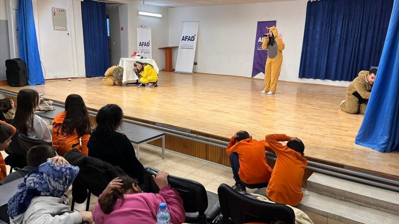 Burdur'un Yeşilova ve Tefenni ilçelerinde, çocuklarda afetlerde doğru davranış bilincini geliştirmek amacıyla tiyatro oyunu sahnelendi.