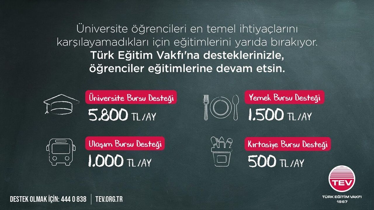 Türk Eğitim Vakfı (TEV), bu bayramda da gençlerin eğitim yolculuklarında karşılaştıkları temel ihtiyaçlara dikkat çekiyor. Vakıf; TEV Tamamlayıcı Bursları aracılığıyla yemek, ulaşım ve kırtasiye gibi öğrencilerin günlük yaşamlarında karşılarına çıkan masrafların eğitim süreçlerini zorlaştırmaması için herkesi desteğe davet ediyor.