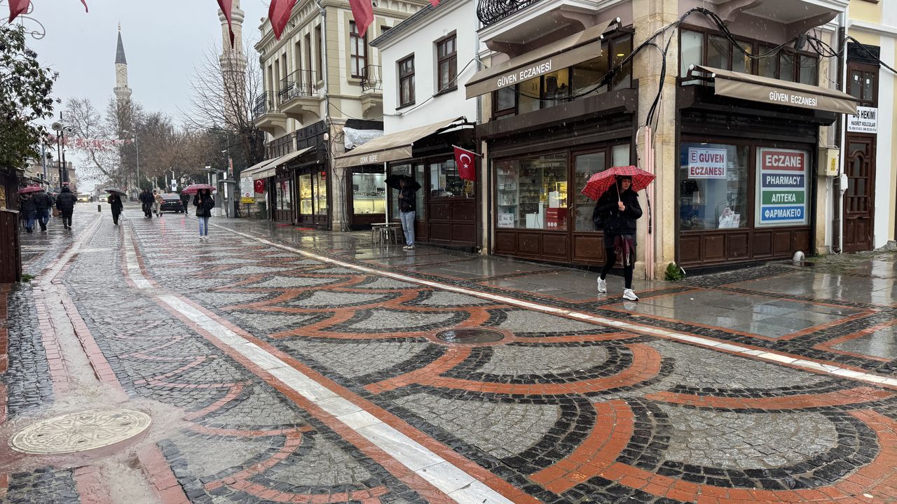 Edirne'de sabah saatlerinde başlayan sağanak öğleye doğru etkisini artırdı.
