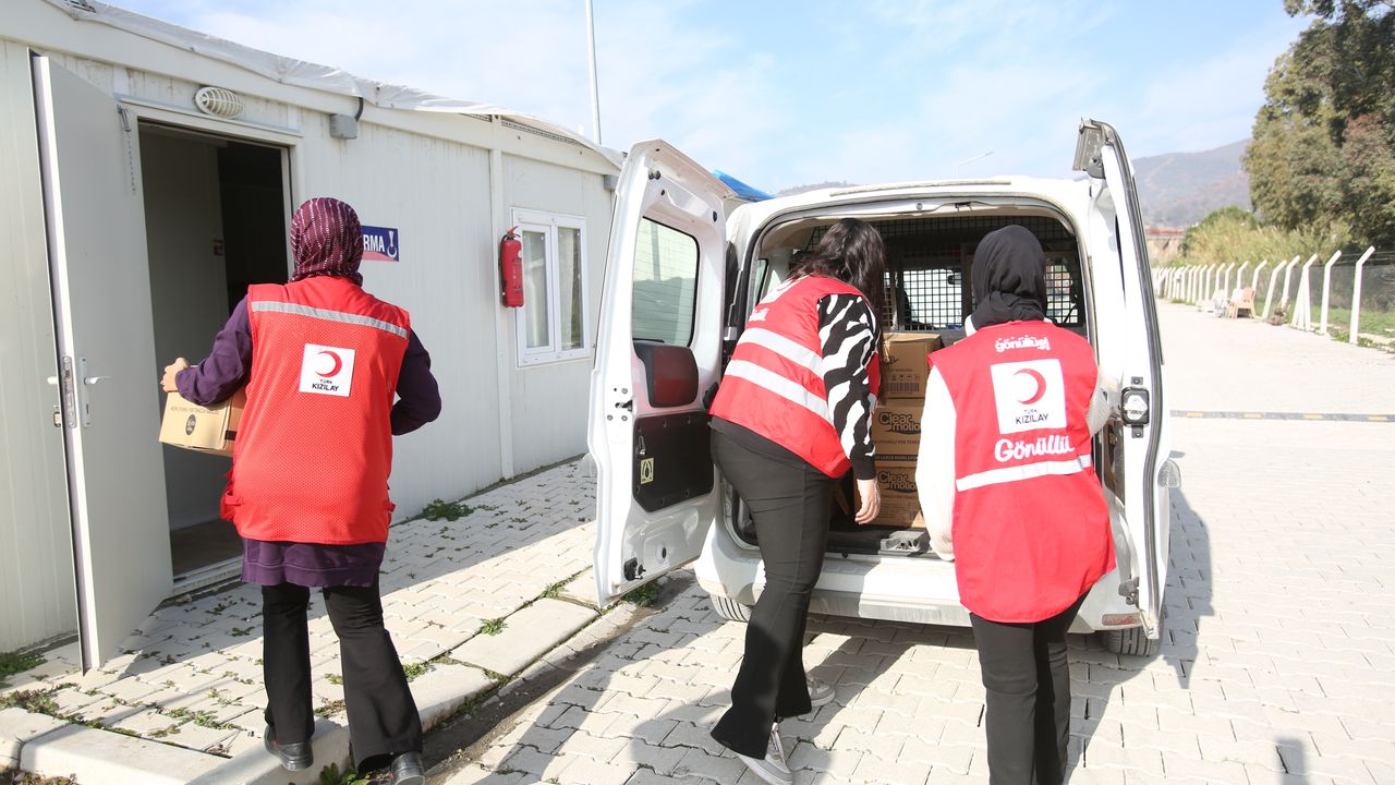 Türk Kızılay Hatay Şubesi ekipleri, merkez Antakya ilçesindeki depremzedelere hijyen kolisi desteğinde bulundu.