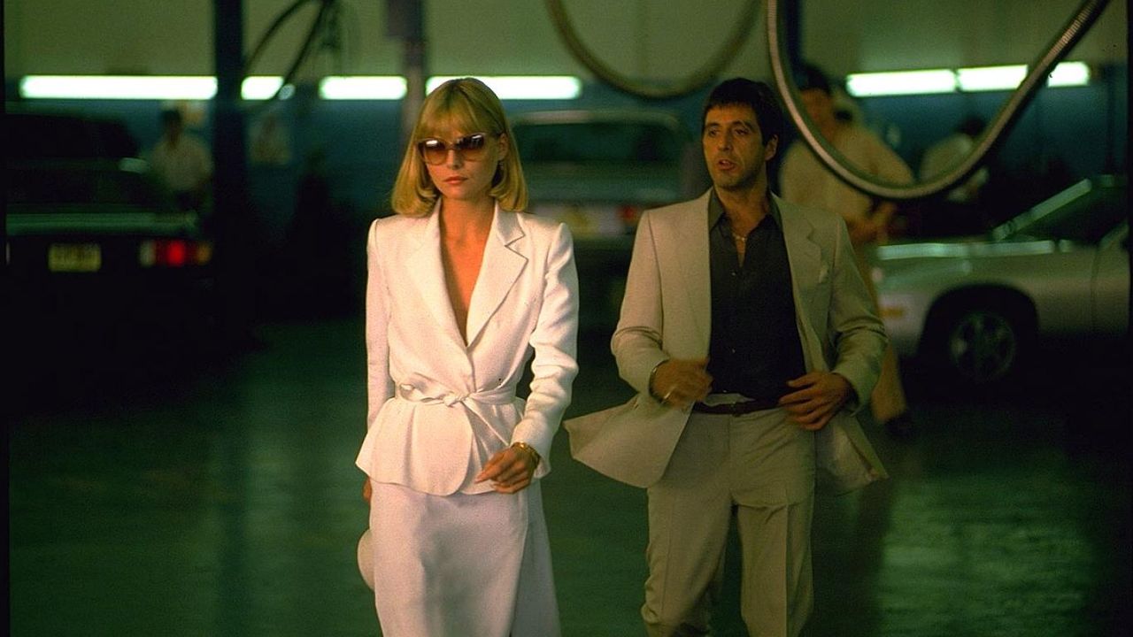 1983 tarihli suç klasiği, Miami'nin en büyük uyuşturucu kaçakçısı haline gelen hırslı Kübalı göçmen Tony Montana'nın hikayesini anlatıyor. Pfeiffer'ın canlandırdığı Elvira ise Tony'nin sorunlu eşi; uyuşturucu bağımlısı, sosyetik bir kadın ve Montana'nın patronu Frank Lopez'in eski sevgilisiydi.