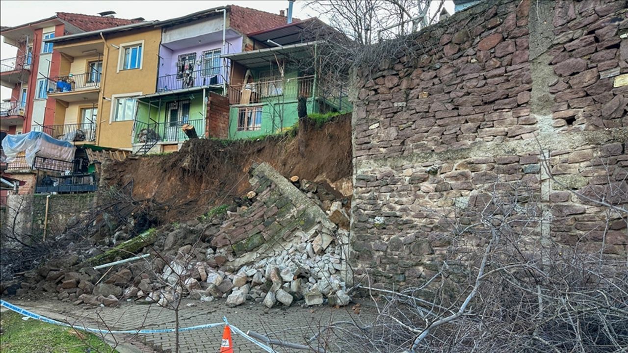 Uşak'ta istinat duvarının çökmesi ve toprak kayması nedeniyle 3 ev tahliye edildi.