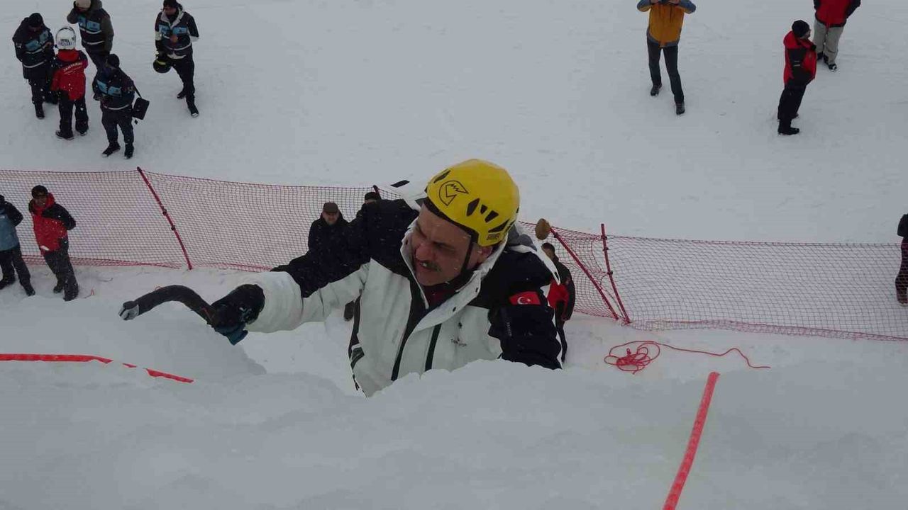 Erzurum Valisi Mustafa Çiftçi, Palandöken Kayak Merkezi’nde yapılan yapay buz duvarına tırmandı.