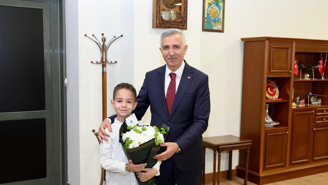 Kahramanmaraş Valisi Mükerrem Ünlüer, 23 Nisan Ulusal Egemenlik ve Çocuk Bayramı etkinlikleri kapsamında Hasan Balcı İlkokulu 2/C sınıfı öğrencisi Baybarshan Şimşek ve ailesini makamında misafir etti.