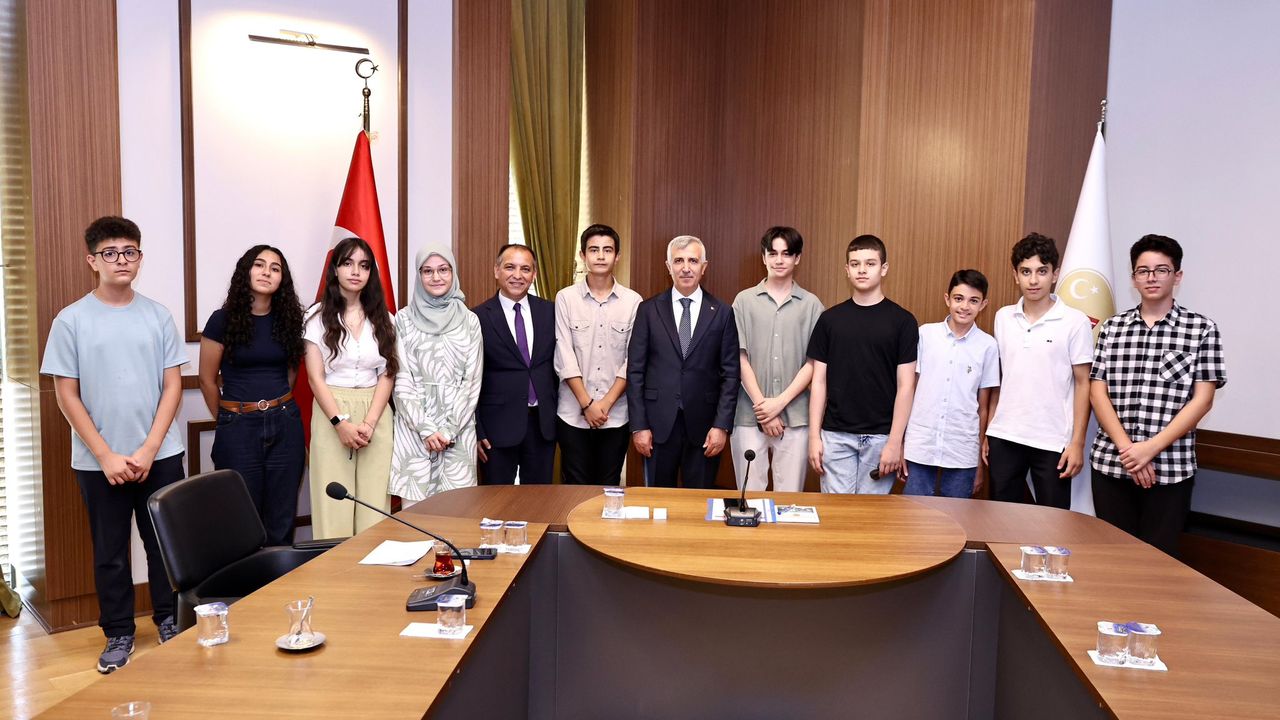 2025 Liselere Geçiş Sınavı’nda (LGS) 500 tam puan alarak Türkiye birincisi olan Kahramanmaraşlı öğrenciler, Kahramanmaraş Valisi Mükerrem Ünlüer tarafından makamında kabul edildi.