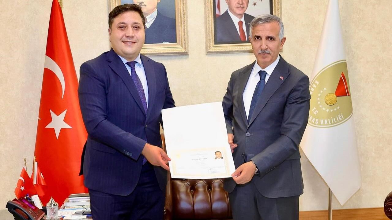 Kahramanmaraş Valisi Mükerrem Ünlüer, İl Göç İdaresi Müdürü Orhan Veli Sarı’yı makamında kabul ederek, özverili çalışmalarından dolayı kendisine “Başarı Belgesi” takdim etti.