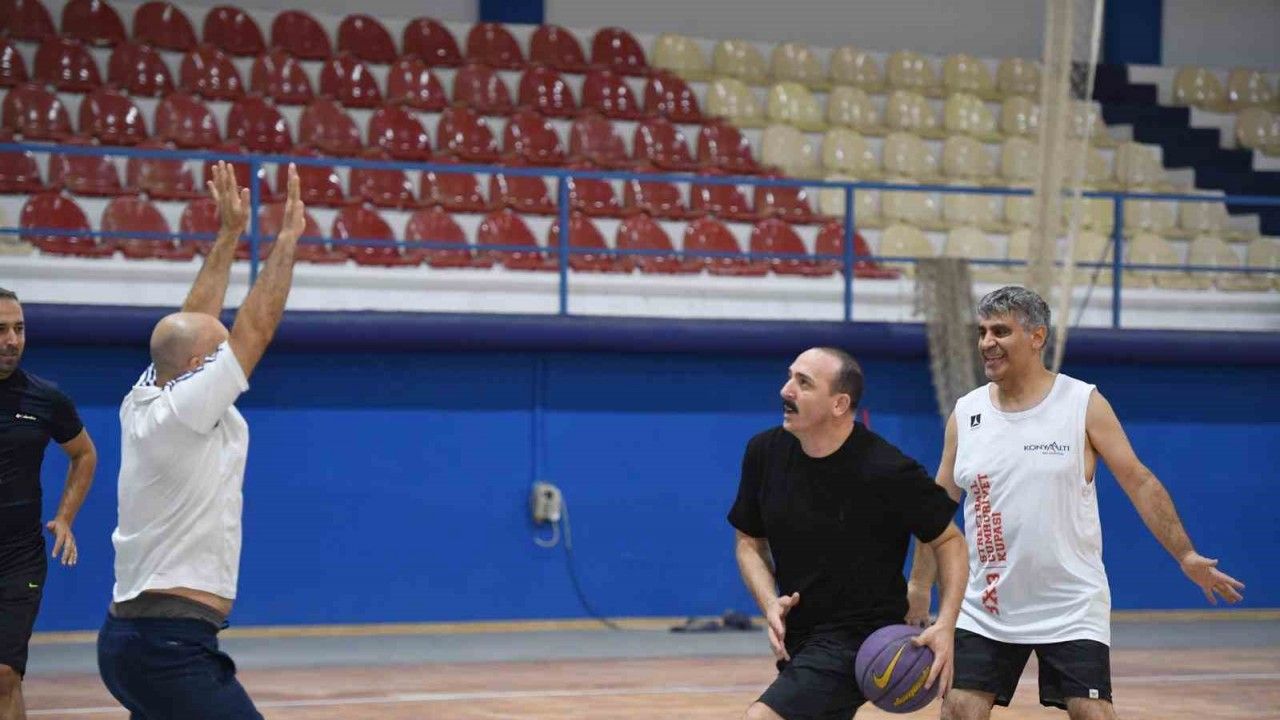 Konyaaltı Belediye Başkanı Cem Kotan, Başkan Yardımcıları ve Birim Müdürleri eşliğinde Konyaaltı’nda halka kazandırılan yeni spor tesisinde basketbol maçı yaptı. Kotan, "Bugün planladığımız maç ile yeni tesisimizin spor salonunu denemiş olduk. Gerek zemini, gerek tribünü olsun salonumuz tamamıyla vatandaşlarımız için özenle hazırlandı" dedi.